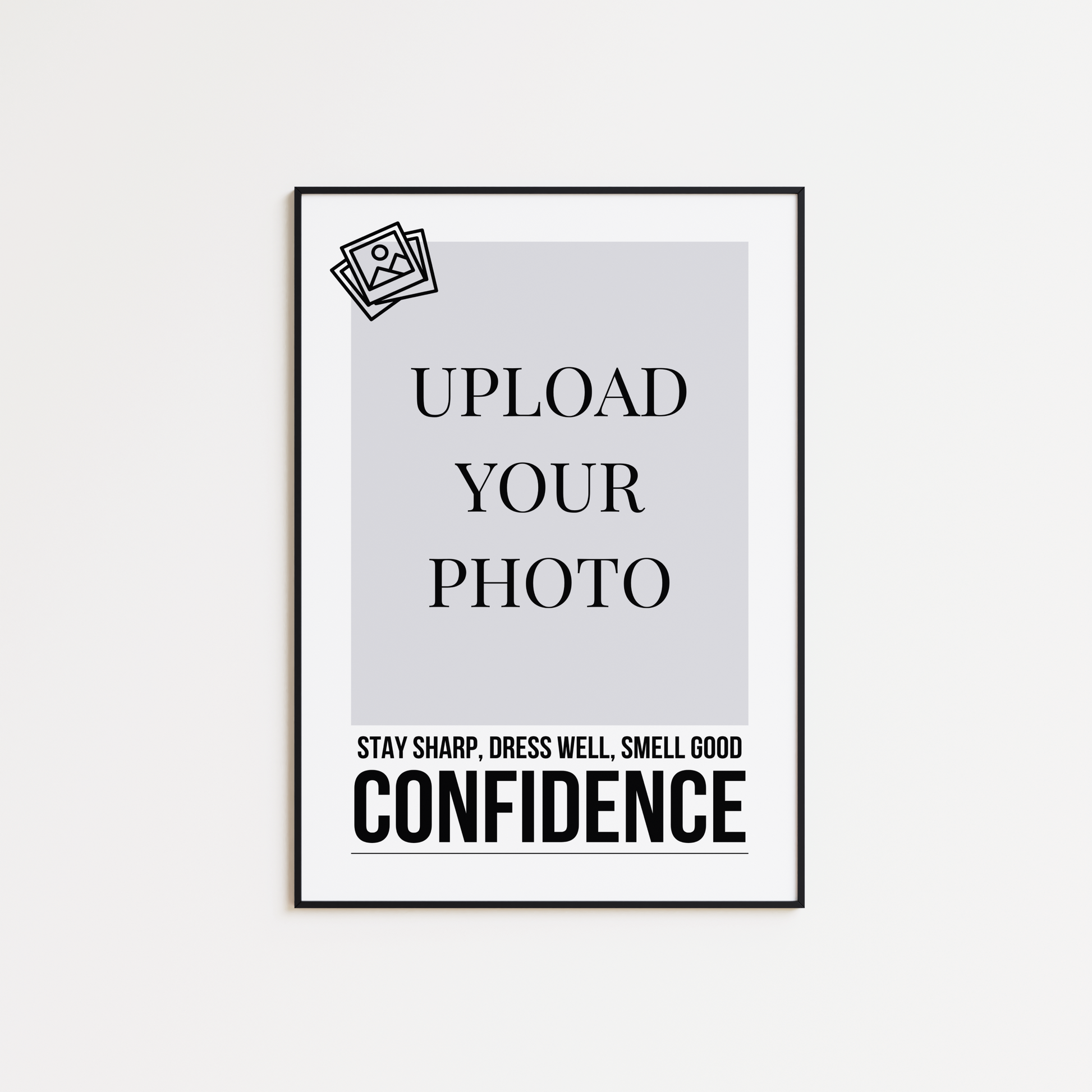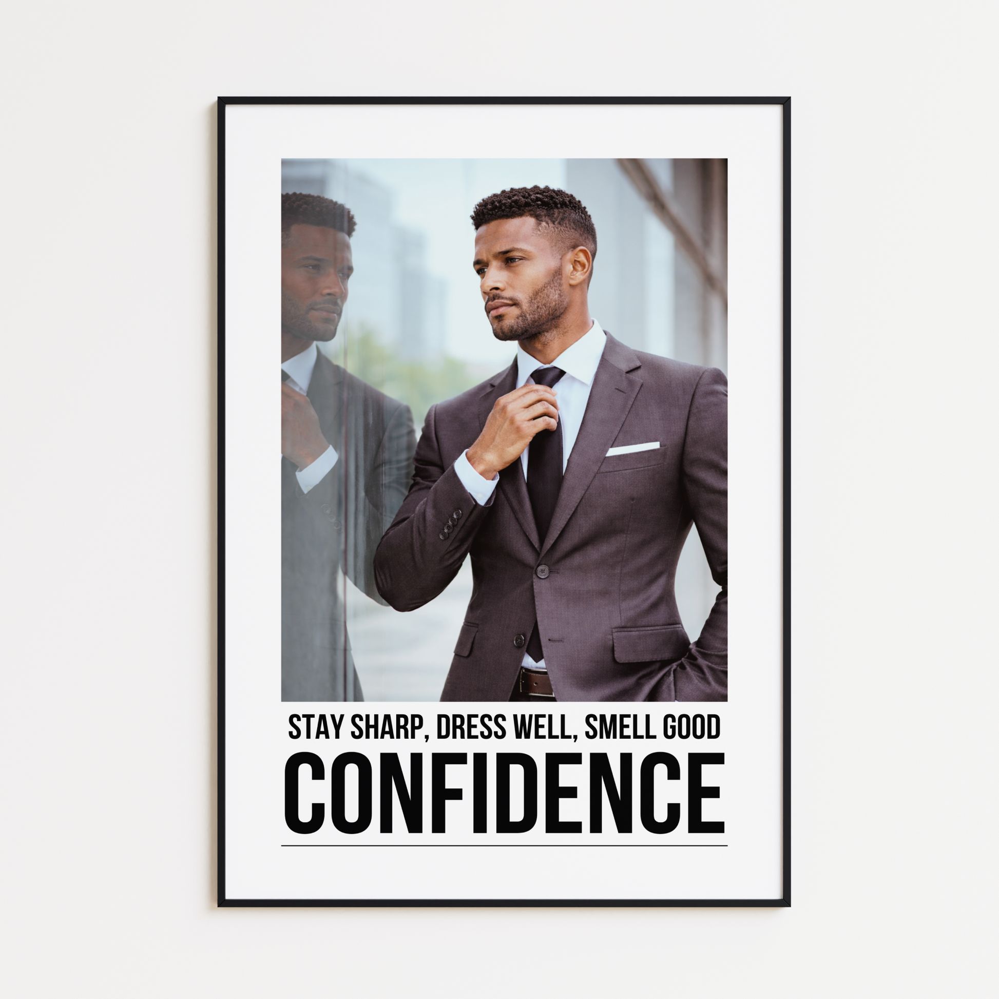 This bold black and white motivational poster is a reminder that confidence starts with how you show up. Strong minimalist typography combined with powerful contrast creates a statement that commands attention without distraction.