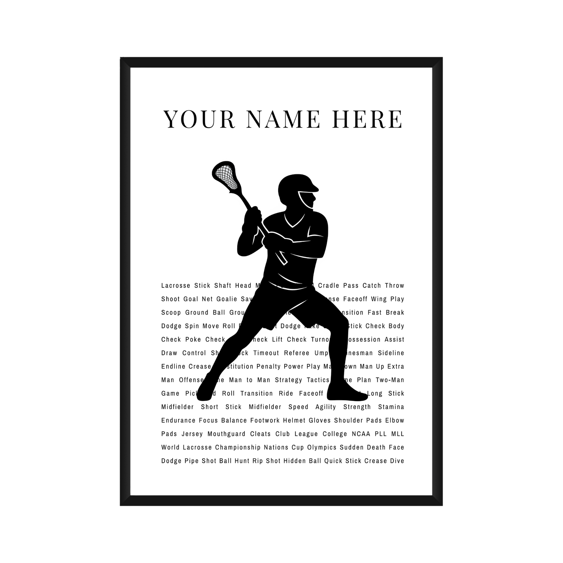 Celebrate your love for lacrosse with this personalized poster, designed in a stylish newspaper-inspired layout filled with lacrosse-related words that capture the spirit of the sport. Add your own name, a loved one’s name, or a special message to create a unique, custom art print that’s perfect for your home, office, or as a thoughtful gift for any lacrosse enthusiast.