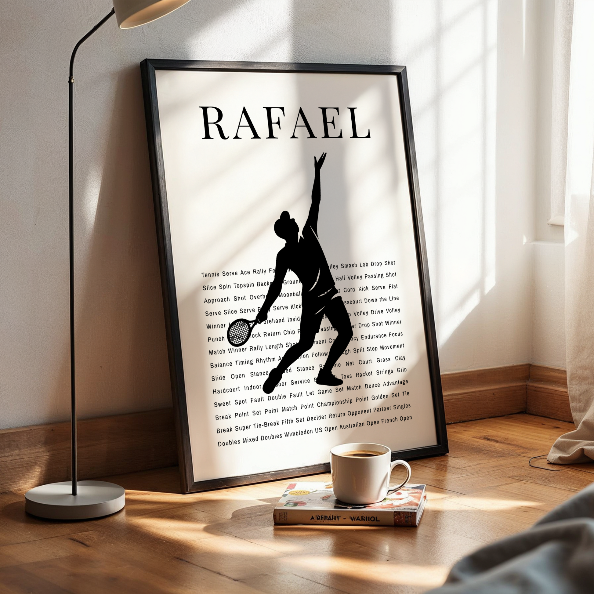 Celebrate your love for tennis with this personalized poster, designed in a stylish newspaper-inspired layout filled with golf-related words that capture the spirit of the game. Add your own name, a loved one’s name, or a special message to create a unique, custom art print that’s perfect for your home, office, or as a thoughtful gift for any golf enthusiast.